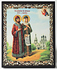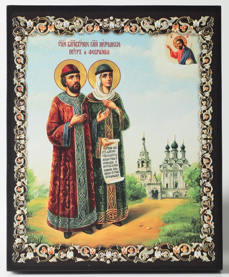 Икона на доске 13х15 объёмная печать, лак Петр и Феврония 5