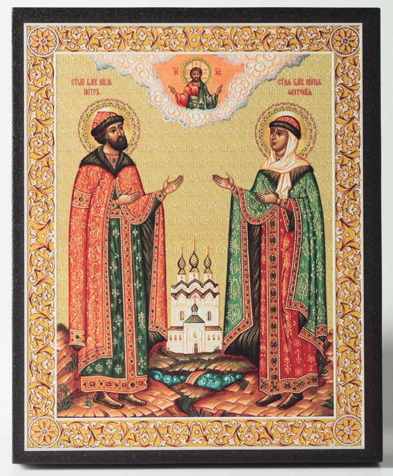 Икона на доске 13х15 объёмная печать, лак Петр и Феврония 6
