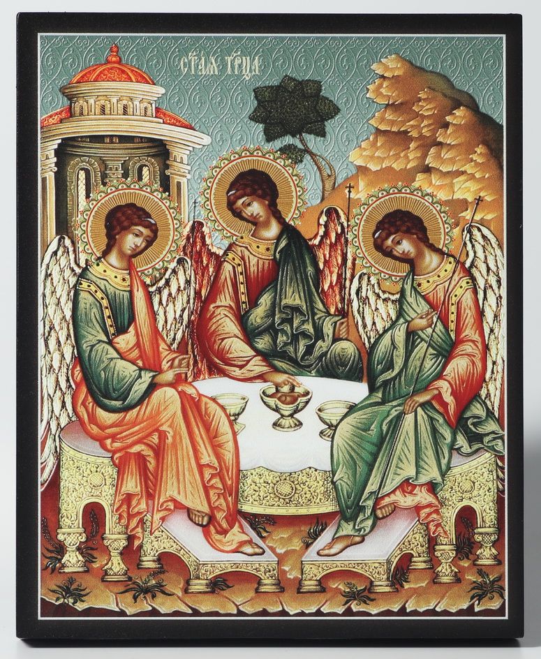 Икона на доске 13х15 объёмная печать, лак Троица 3