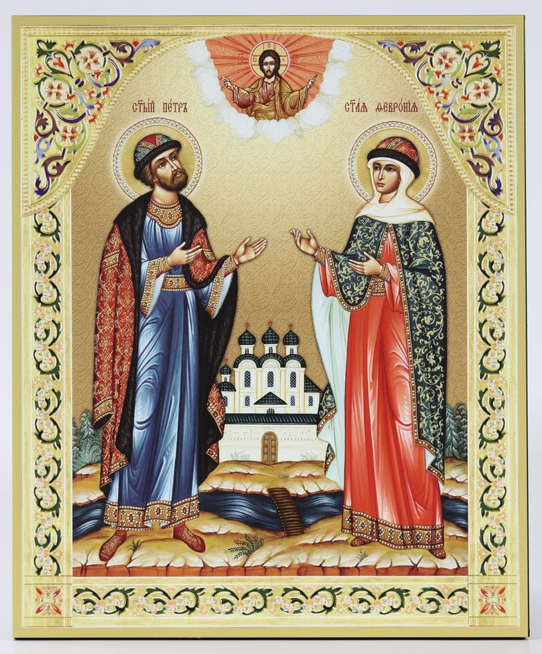 Икона на доске 33х40 объемная печать, лак Петр и Феврония