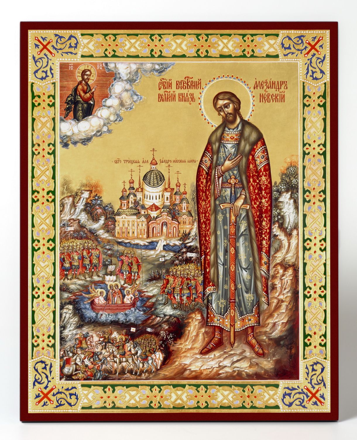 Икона на доске 40х50 объемная печать, лак Александр Невский