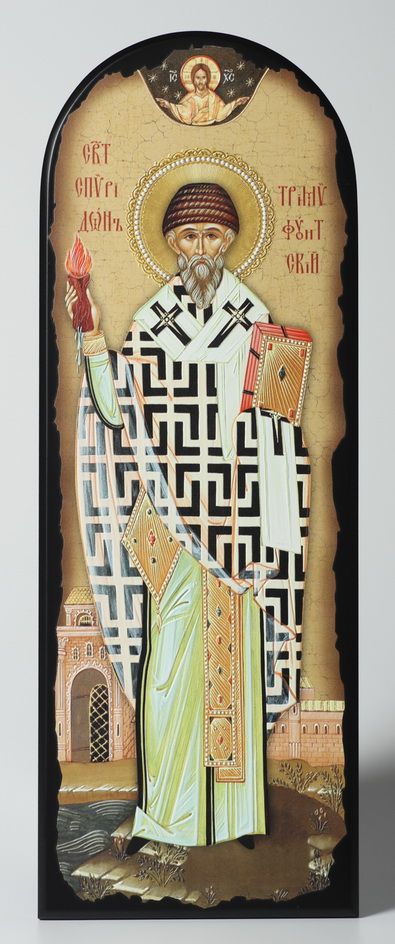 Икона на МДФ 18х50 арочная, объёмная печать, лак Спиридон Тримифунтский 2