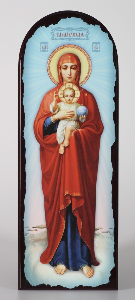 Икона на МДФ 18х50 арочная, объёмная печать, лак Валаамская БМ рост на голубом фоне
