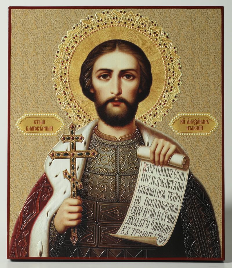 Икона на доске 22х26 объёмная печать, лак Александр Невский