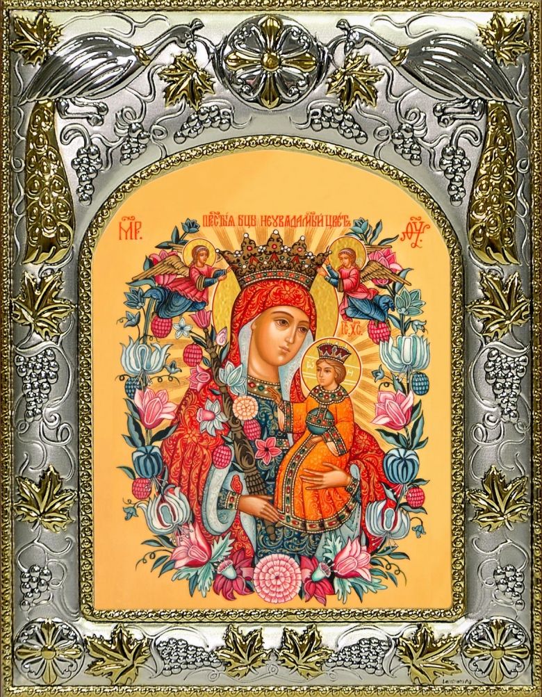 Икона Пресвятой Богородицы НЕУВЯДАЕМЫЙ ЦВЕТ (СЕРЕБРЯНАЯ РИЗА)