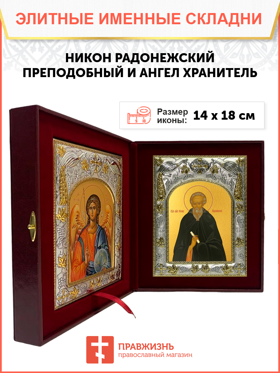 Икона складень Никон Радонежский преподобный и Ангел Хранитель 14 х 18 см