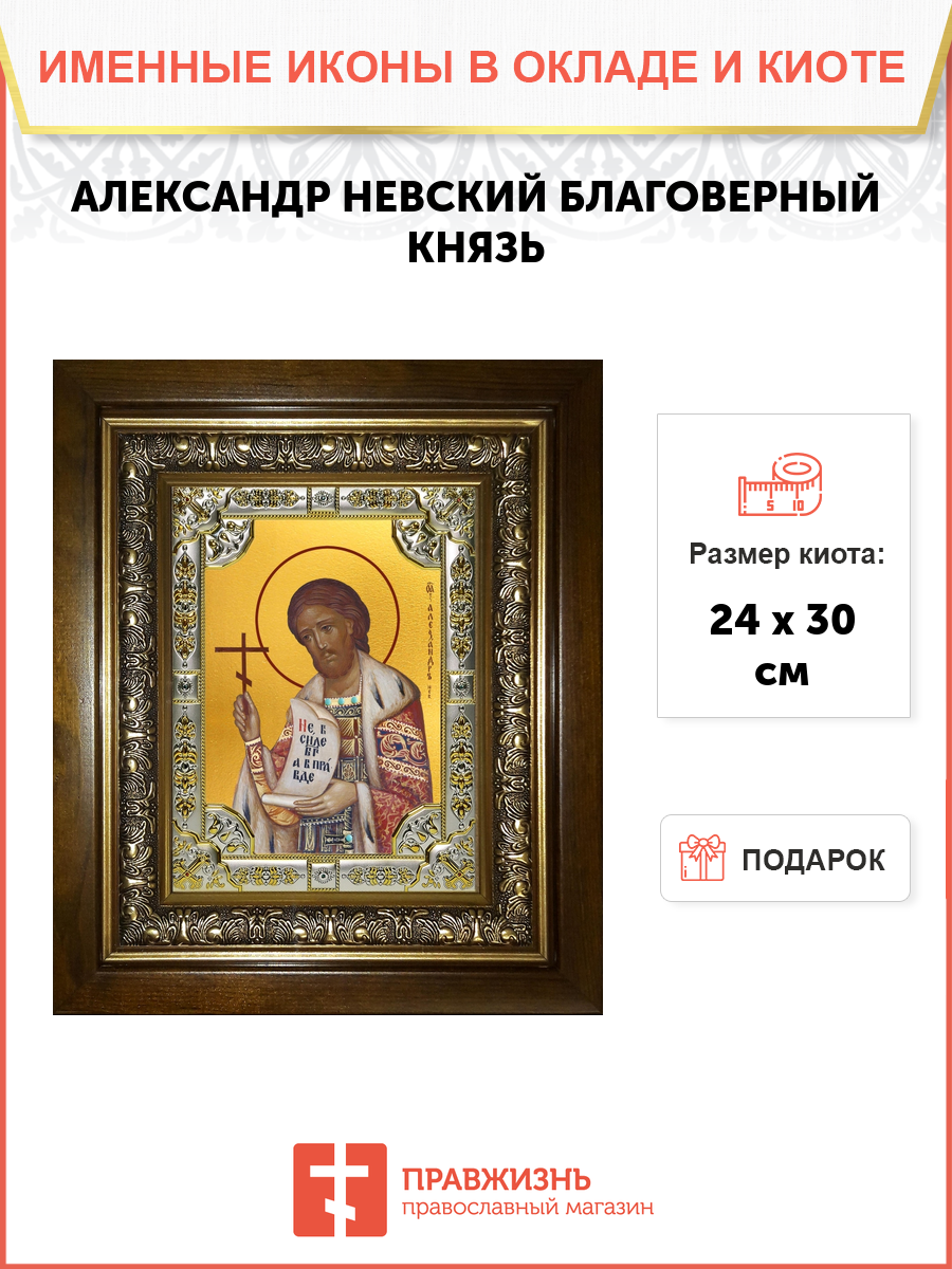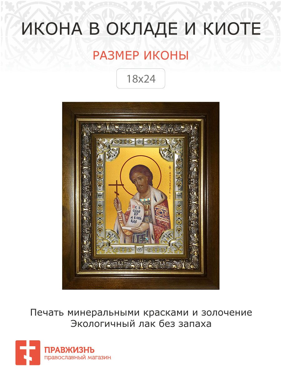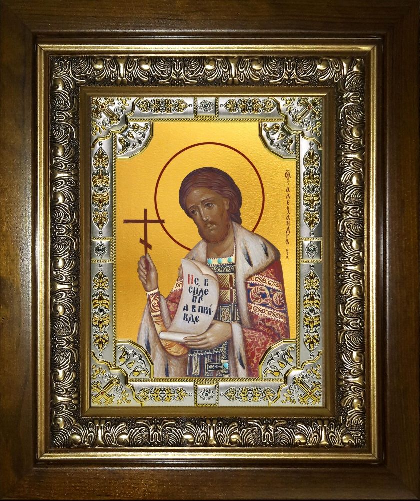 Икона Александр Невский в деревянном киоте