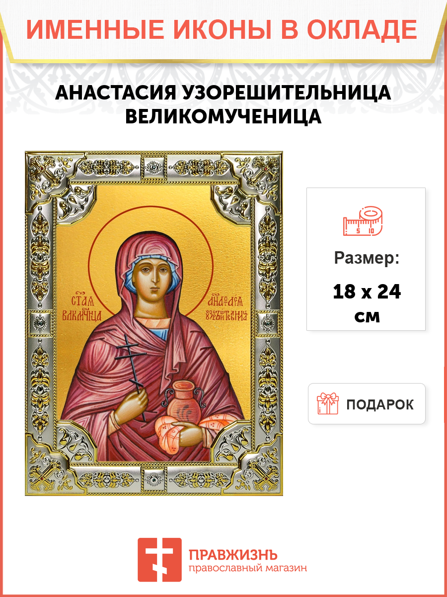 Икона АНАСТАСИЯ Узорешительница, Великомученица (СЕРЕБРЯНАЯ РИЗА)