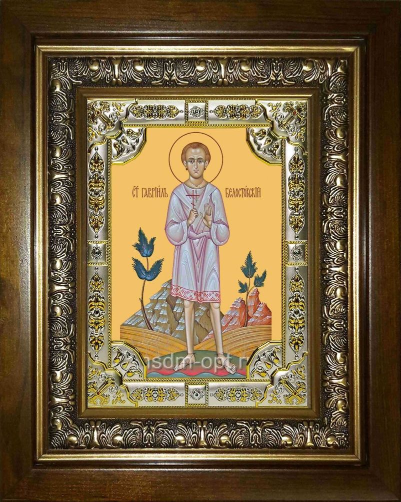 Икона Гавриил Белостокский младенец в деревянном киоте