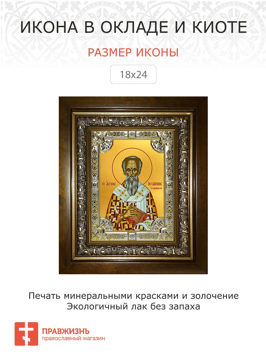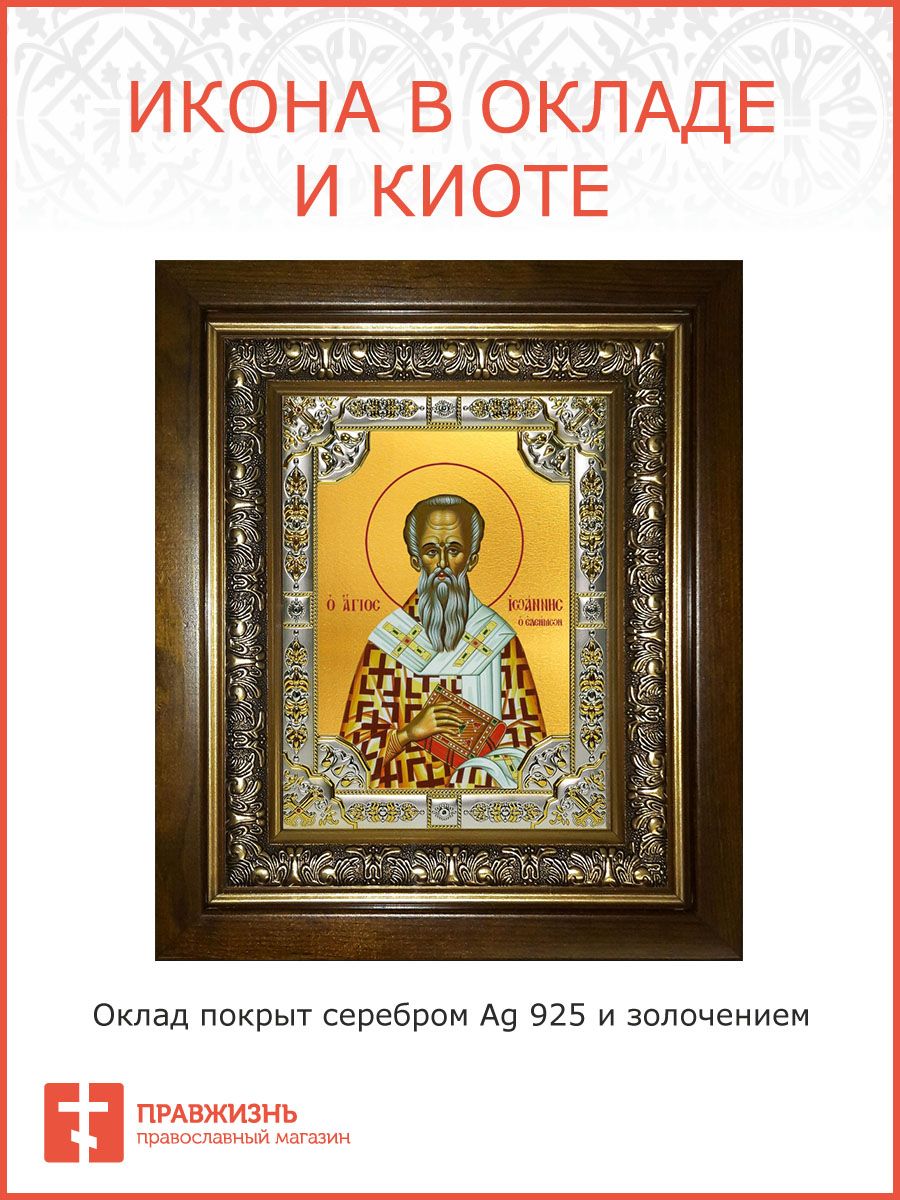 Икона Иоанн Милостивый Патриарх Александрийский святитель в деревянном киоте