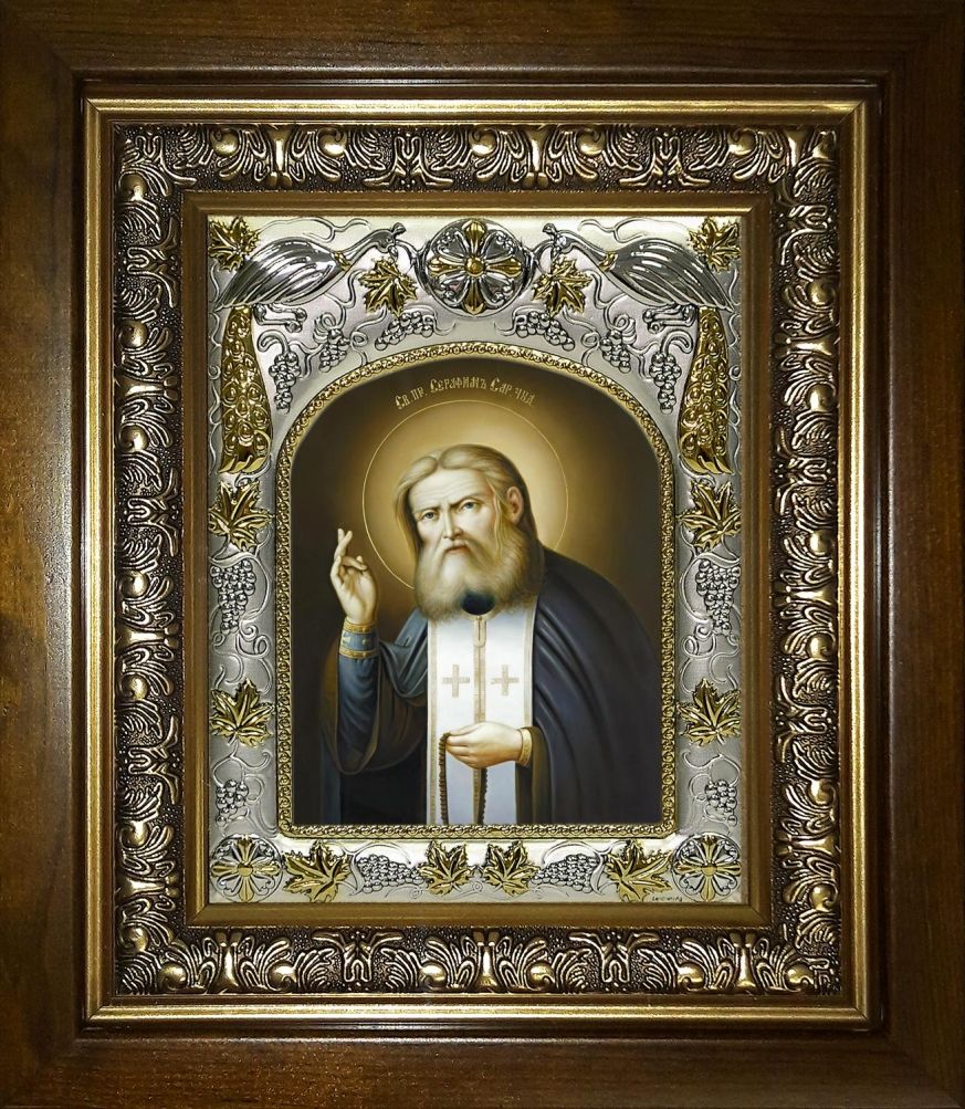 Икона Серафим Саровский преподобный чудотворец, в деревяном киоте