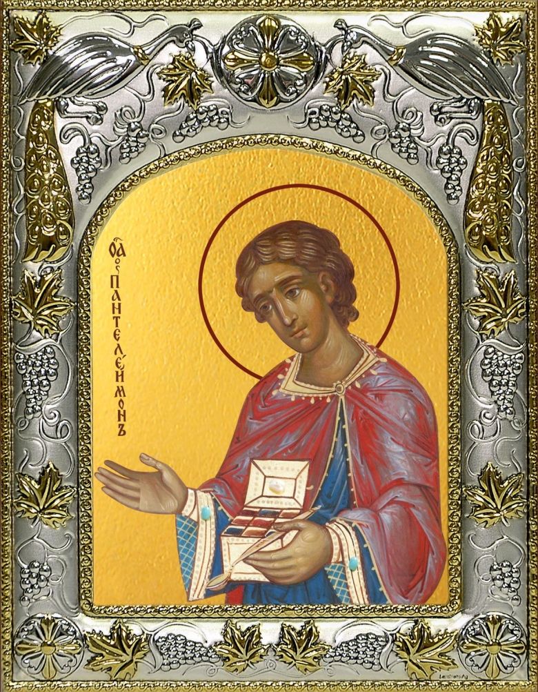 Икона ПАНТЕЛЕИМОН Целитель, Великомученик (СЕРЕБРЯНАЯ РИЗА)