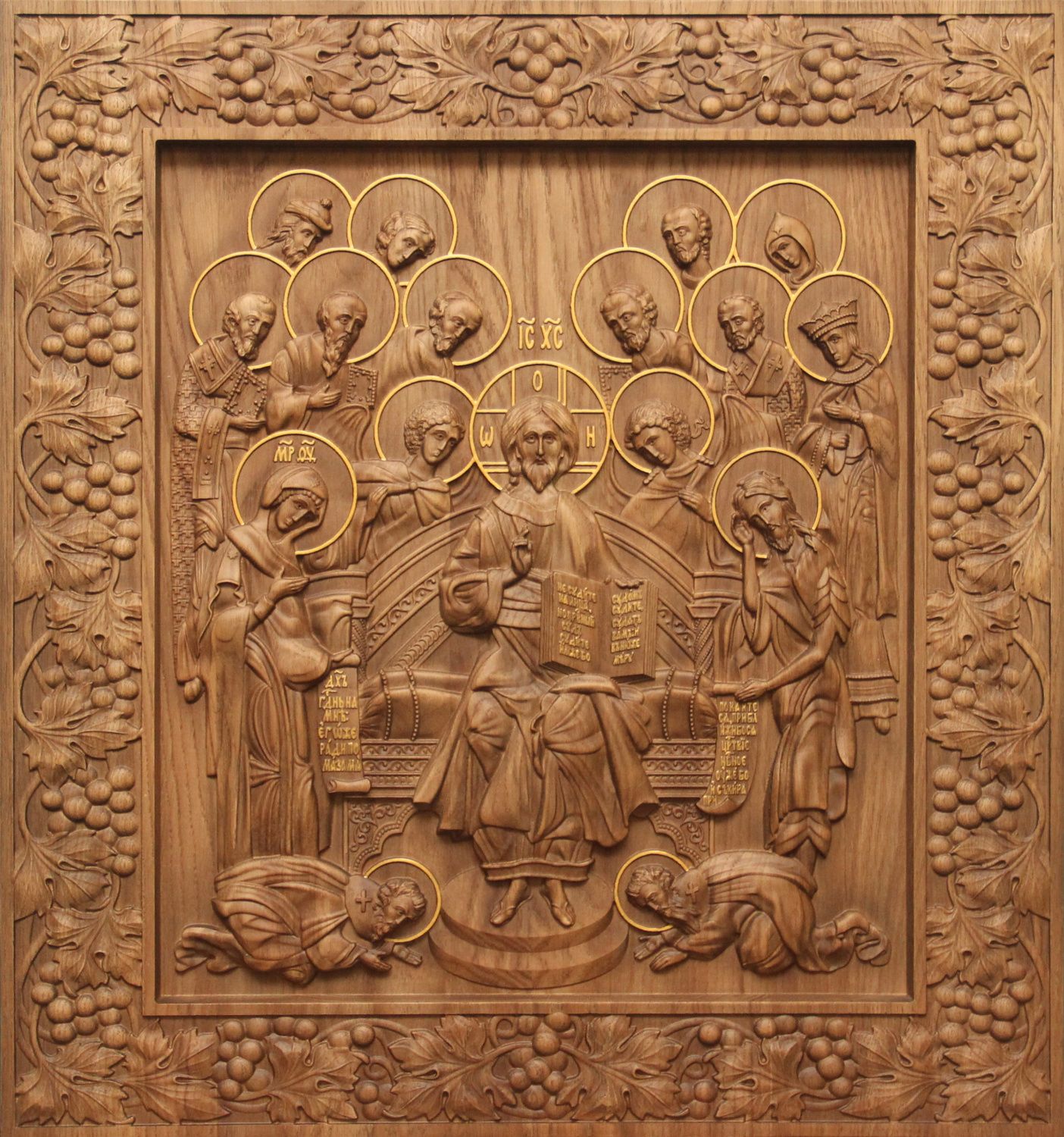 Икона резная Седмица (Спас на престоле с предстоящими)