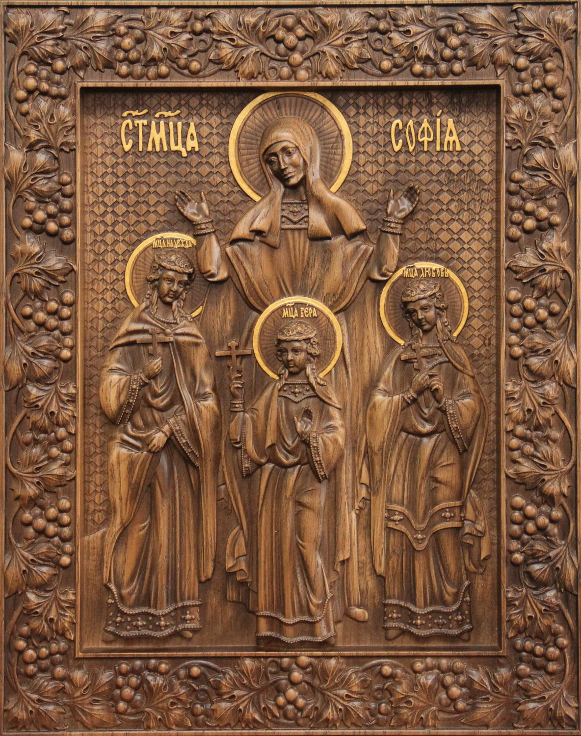 Икона резная Вера, Надежда, Любовь и мать их Софья