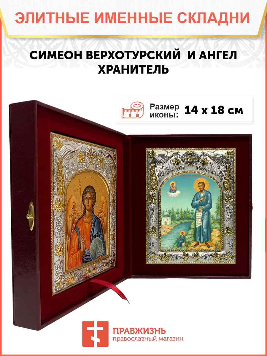 Икона складень Симеон Верхотурский праведный и Ангел Хранитель 14 х 18 см