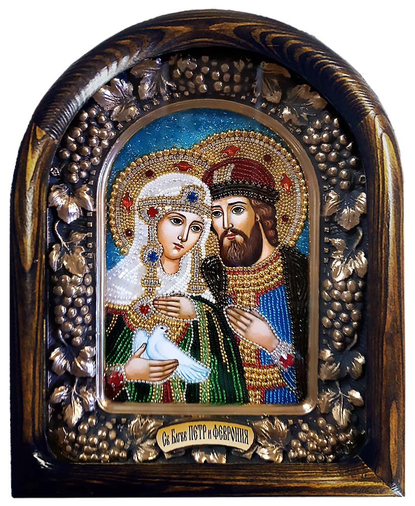 Именная икона Петр и Феврония Муромские бисер, дерево