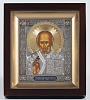 Икона в киоте 11х13 фигурный №2 темпера, пластмассовый подрамник, риза никель, эмаль, золоч Николай Чудотворец