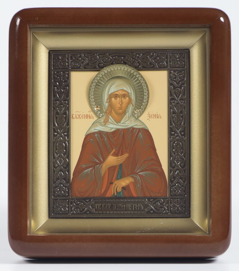 Икона в киоте 11х13 фигурный, темпера, риза патинированая Ксения Петербургская