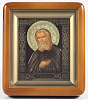 Икона в киоте 11х13 фигурный, темпера, риза патинированая Серафим Саровский