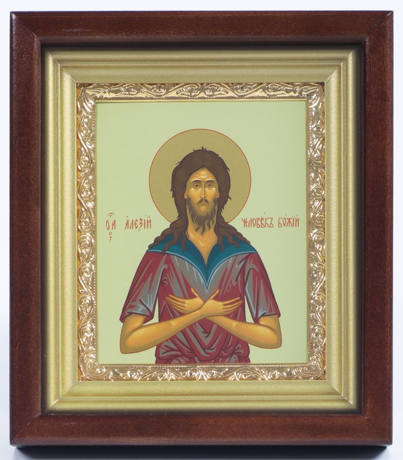 Икона в киоте 11х13 сложный, темпера, рамка золочёная Алексей - Человек Божий