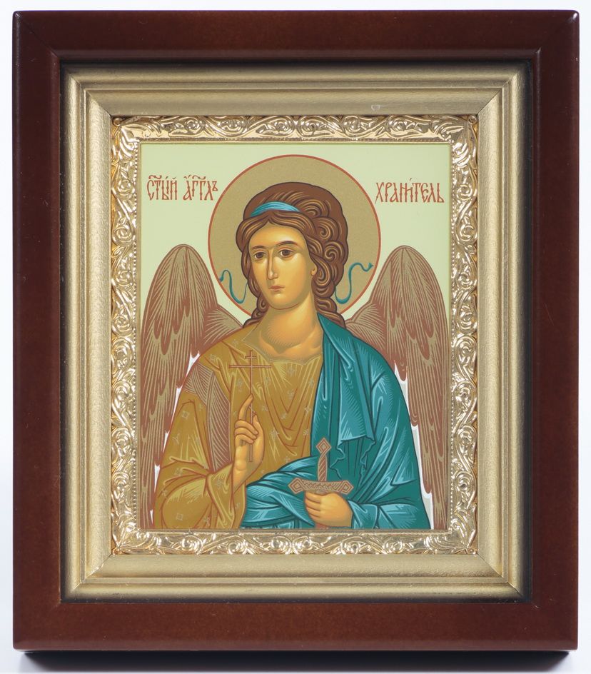 Икона в киоте 11х13 сложный, темпера, рамка золочёная Ангел-Хранитель
