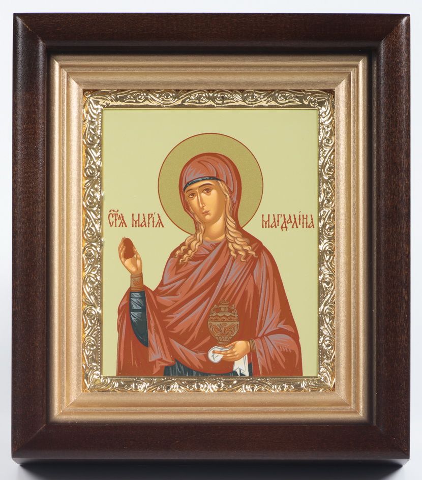 Икона в киоте 11х13 сложный, темпера, рамка золочёная Мария Магдалина