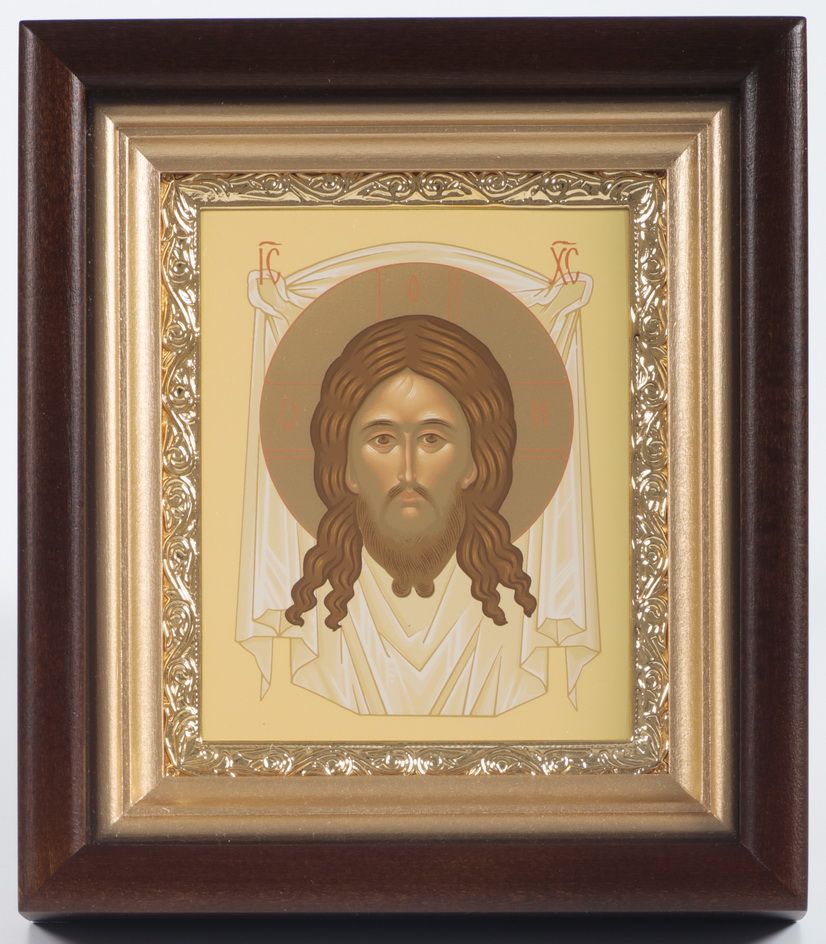 Икона в киоте 11х13 сложный, темпера, рамка золочёная Спас Нерукотворный
