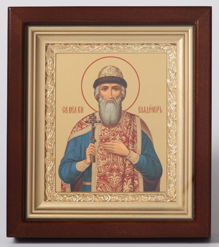 Икона в киоте 11х13 сложный, темпера, рамка золочёная Владимир равн. князь Киевск. 1