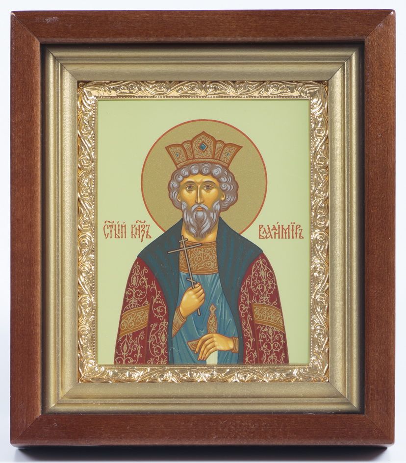 Икона в киоте 11х13 сложный, темпера, рамка золочёная Владимир Равноапостольный