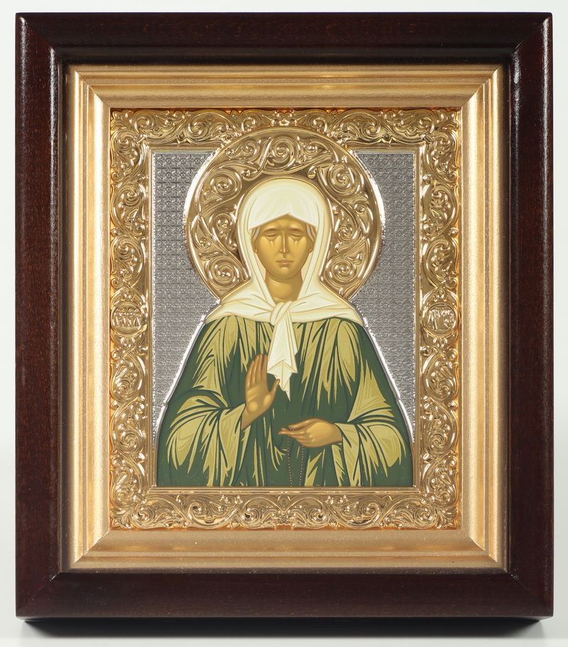 Икона в киоте 12х14 сложный №2 темпера, никель, золочение Матрона