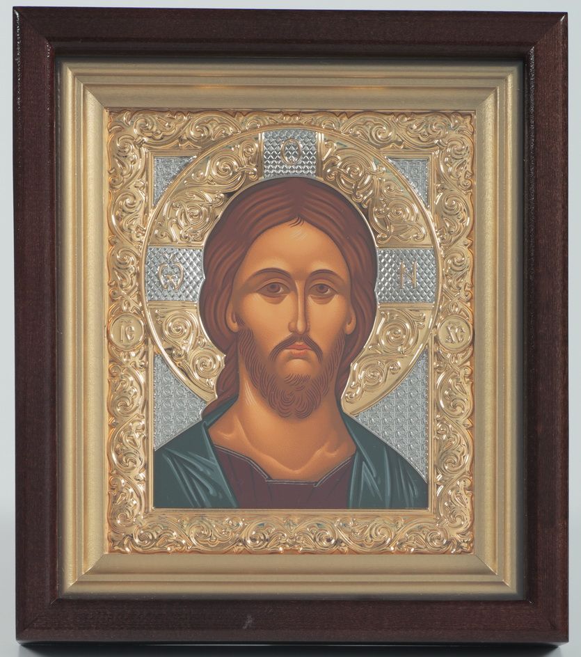 Икона в киоте 12х14 сложный №2 темпера, никель, золочение Спаситель