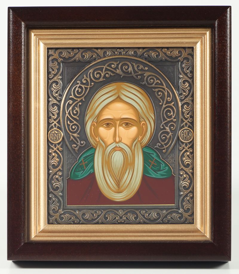 Икона в киоте 12х14 сложный №2 темпера, риза патинированая Сергий Радонежский