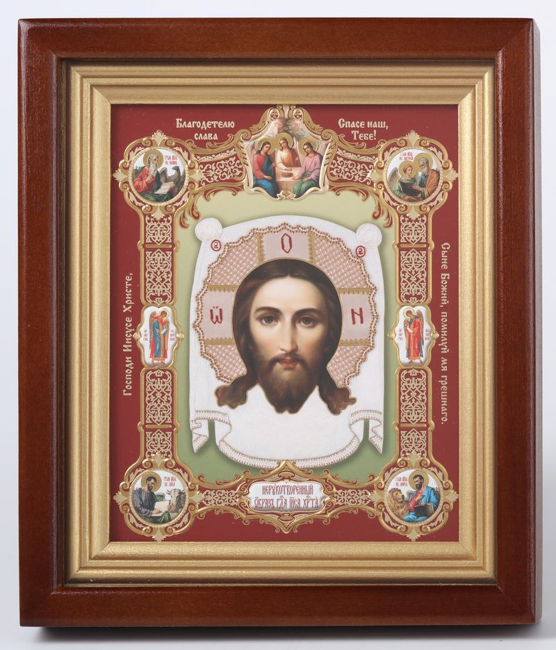 Икона в киоте 13х18 сложный, конгрев, плёнка Спас Нерукотворный с клеймами