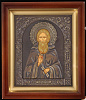 Икона в киоте 15х19 сложный, темпера, риза патинированая Сергий Радонежский