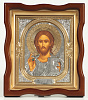 Икона в киоте 18х24 фигурный №4 темпера, риза объёмная, никель, золочение