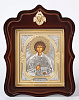 Икона в киоте 18х24 фигурный с навершием, темпера, риза объемная, частично золочёная Пантелеимон
