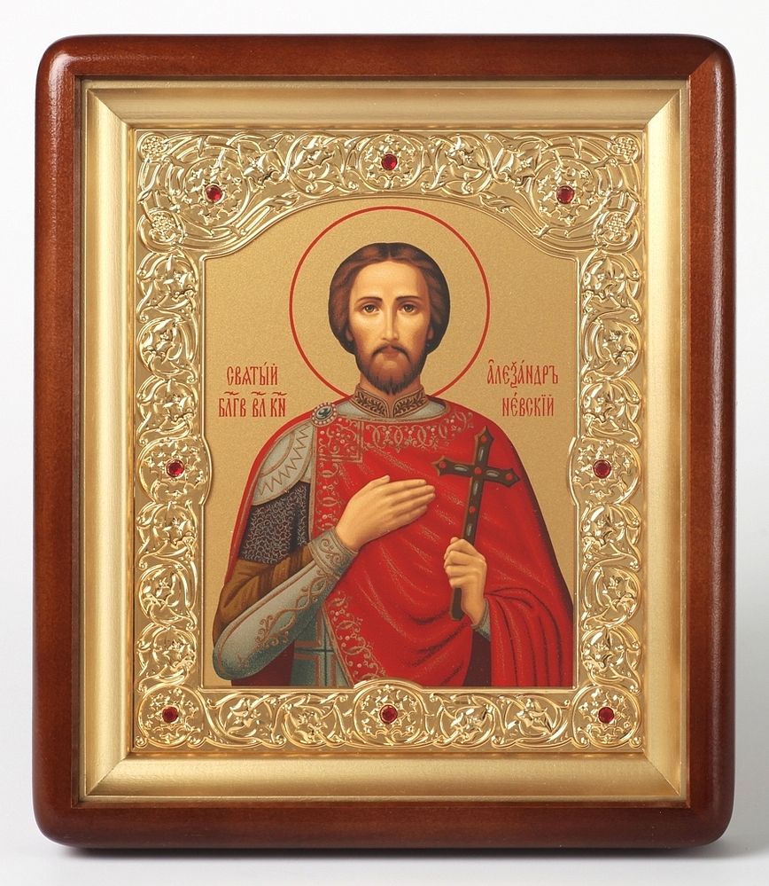 Икона в киоте 18х24 фигурный, темпера, рамка фигурная, золочёная Александр Невский 1