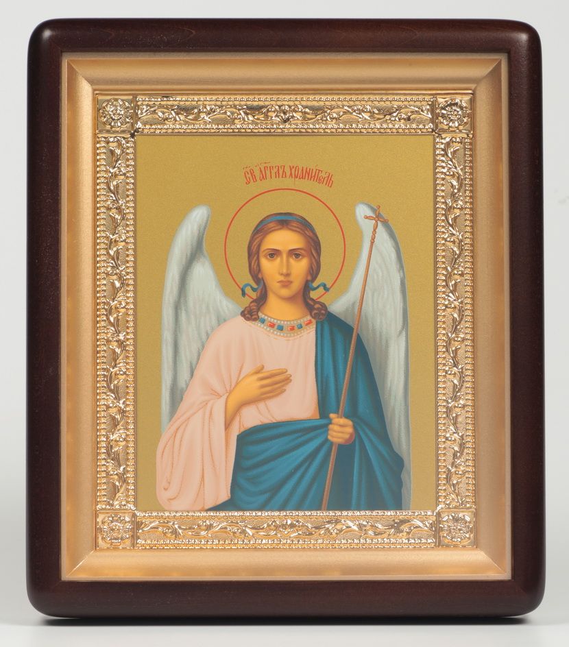 Икона в киоте 18х24 фигурный, темпера, рамка золочёная Ангел Хранитель 1