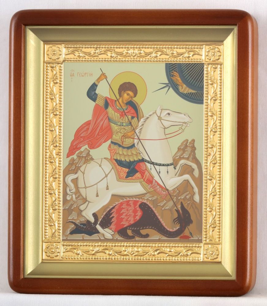 Икона в киоте 18х24 фигурный, темпера, рамка золочёная Чудо Георгия о змие