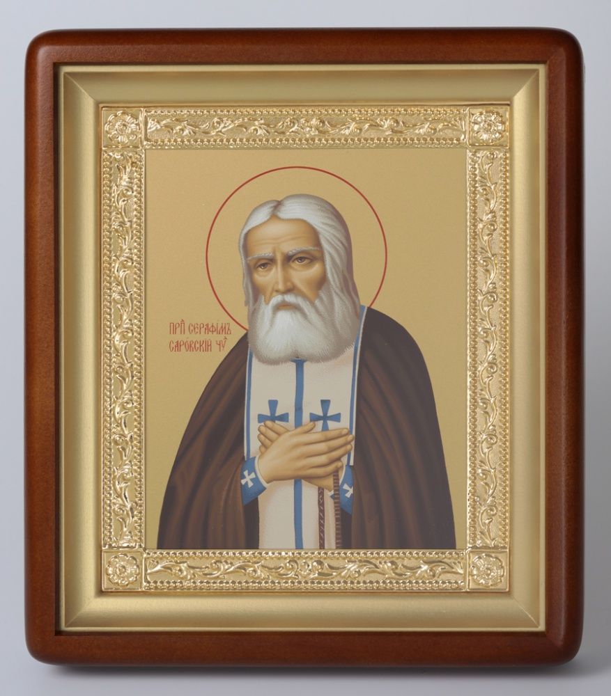 Икона в киоте 18х24 фигурный, темпера, рамка золочёная Серафим Саровский 1