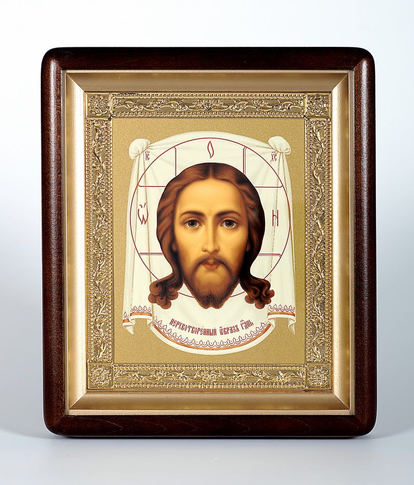 Икона в киоте 18х24 фигурный, темпера, рамка золочёная Спас Нерукотворный №1