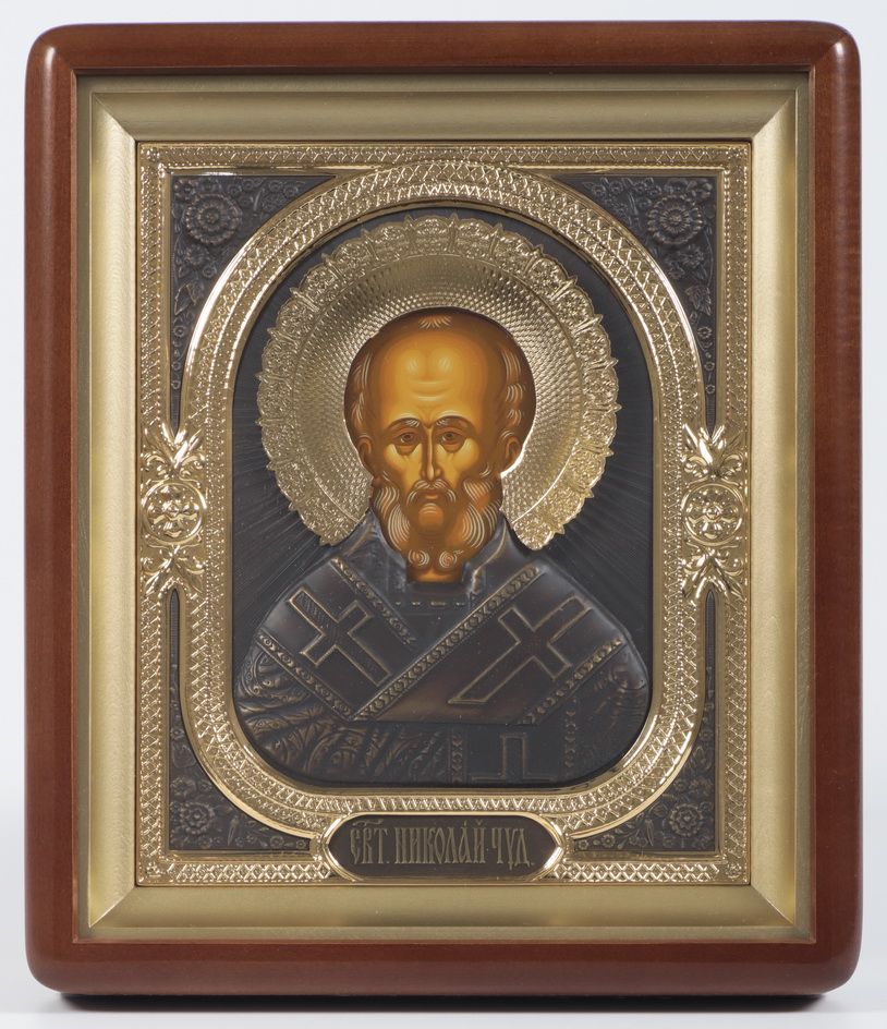 Икона в киоте 18х24 фигурный, темпера, риза комбинированая (зол.патин)