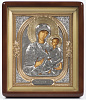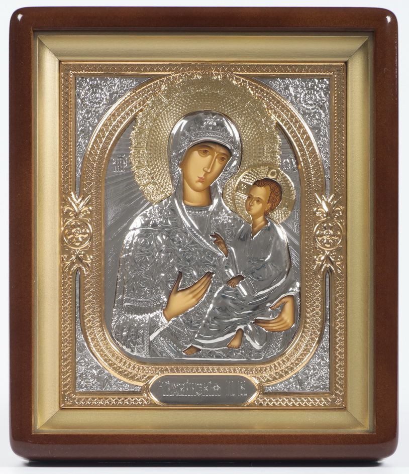 Икона в киоте 18х24 фигурный, темпера, риза объёмная, никель, золочение Тихвинская БМ