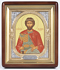 Икона в киоте 18х24 фигурный, темпера, риза-рамка объемная, открытая, золочёная, никелирование Александр Невский