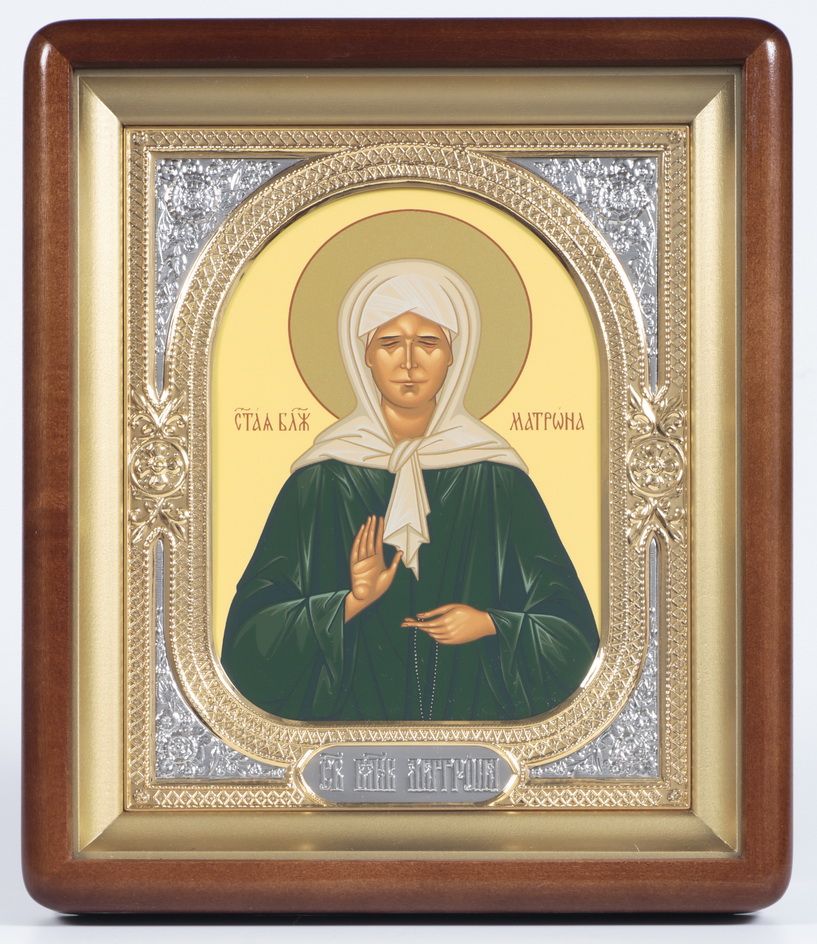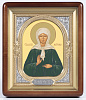 Икона в киоте 18х24 фигурный, темпера, риза-рамка объемная, открытая, золочёная, никелирование Матрона