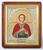 Икона в киоте 18х24 фигурный, темпера, риза-рамка объемная, открытая, золочёная, никелирование Пантелеимон 1