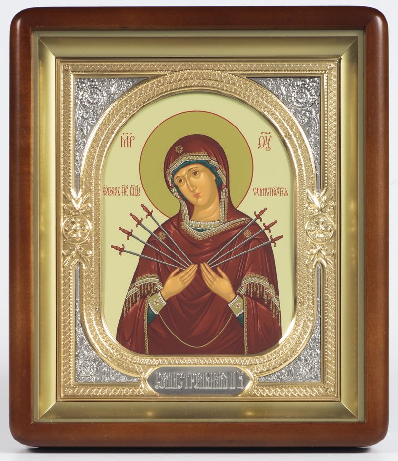 Икона в киоте 18х24 фигурный, темпера, риза-рамка объемная, открытая, золочёная, никелирование Семистрельная БМ