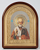 Икона в киоте 24х30 сложный, арочный, фото, риза объемная, открытая, золочение, эмаль Николай Чудотворец