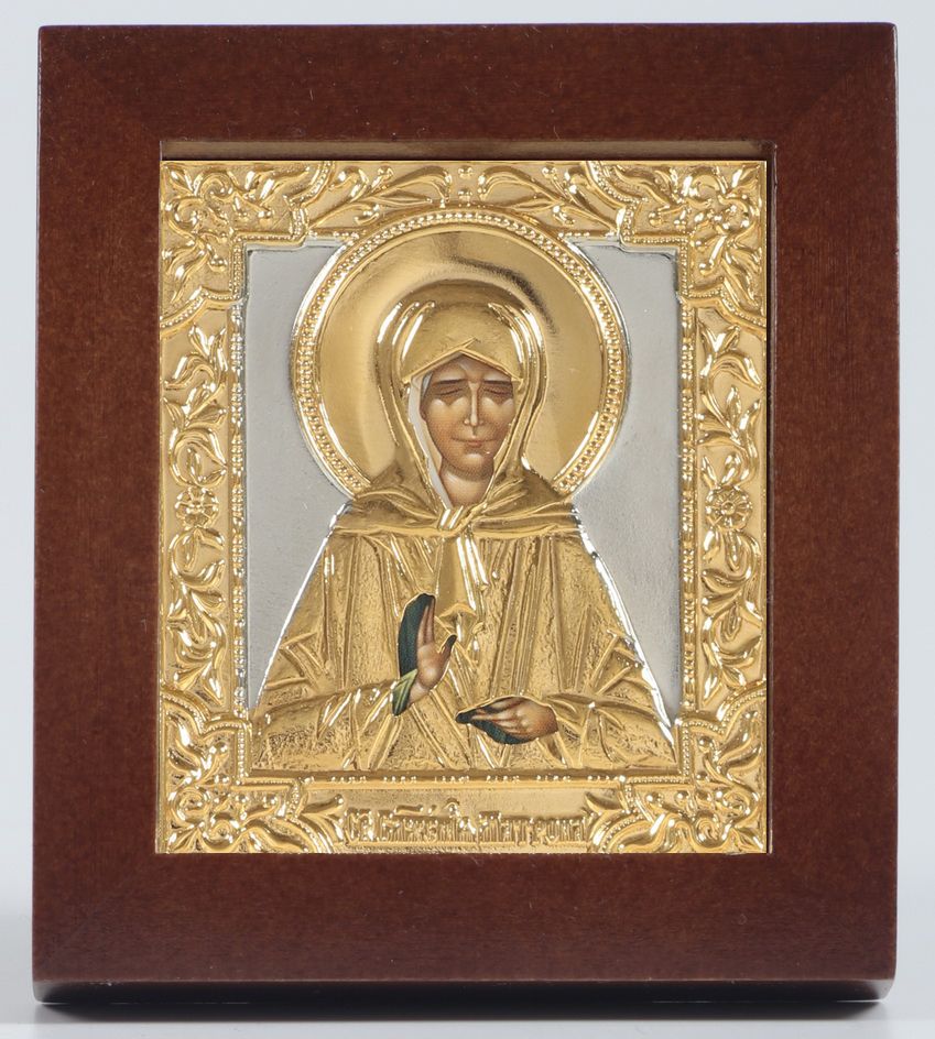 Икона в киоте 6х7 фигурный №2 риза объемная, частично золочёная Матрона