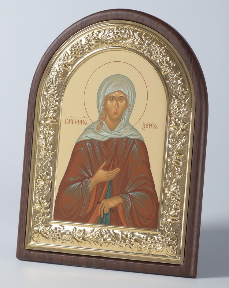 Икона в ризе 18х24 арочная, планшет, рамка золочёная, темпера, упаковка Ксения Петербургская блж.